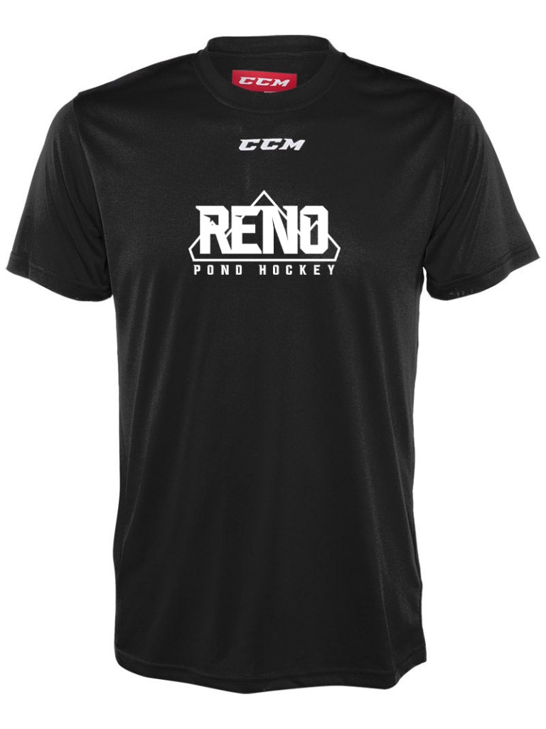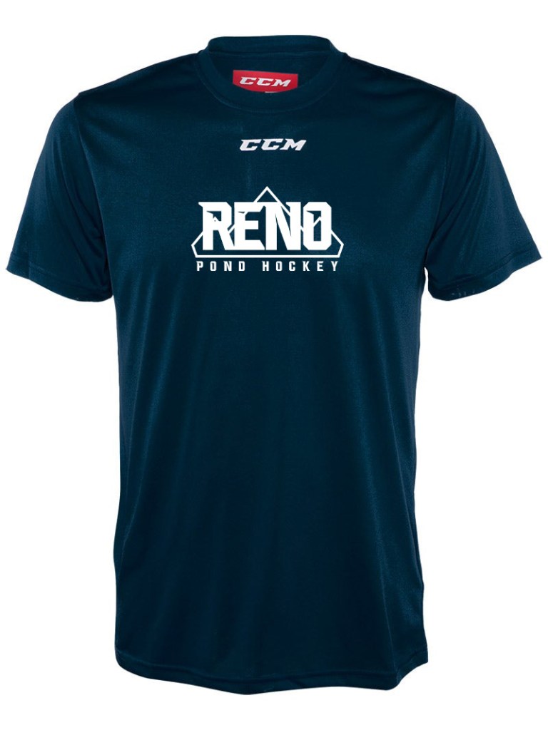 CCM Long Sleeve Training Tech Tee and CCM Training Tech Tee – in Navy or Black with the Reno Pond Hockey logo