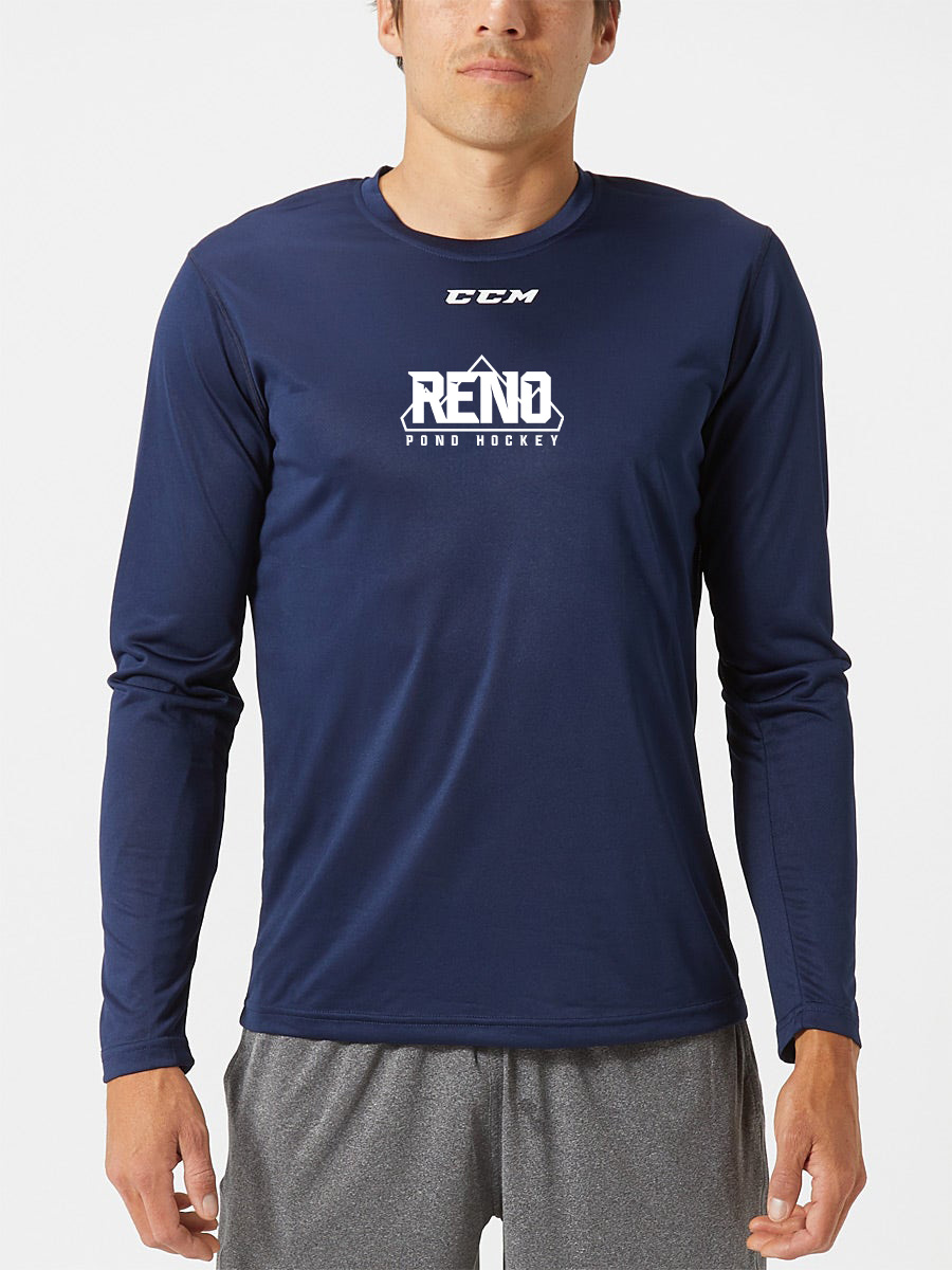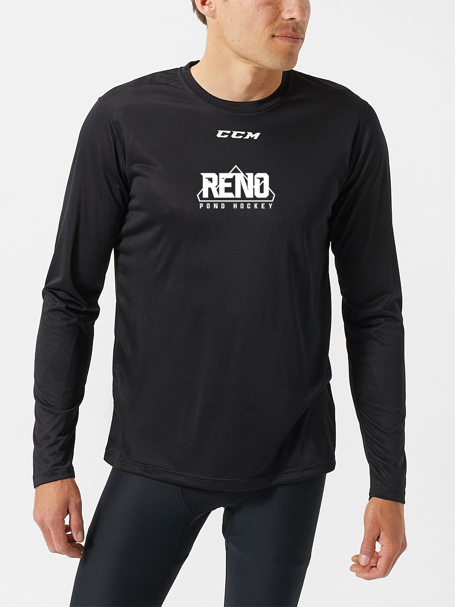 CCM Long Sleeve Training Tech Tee and CCM Training Tech Tee – in Navy or Black with the Reno Pond Hockey logo