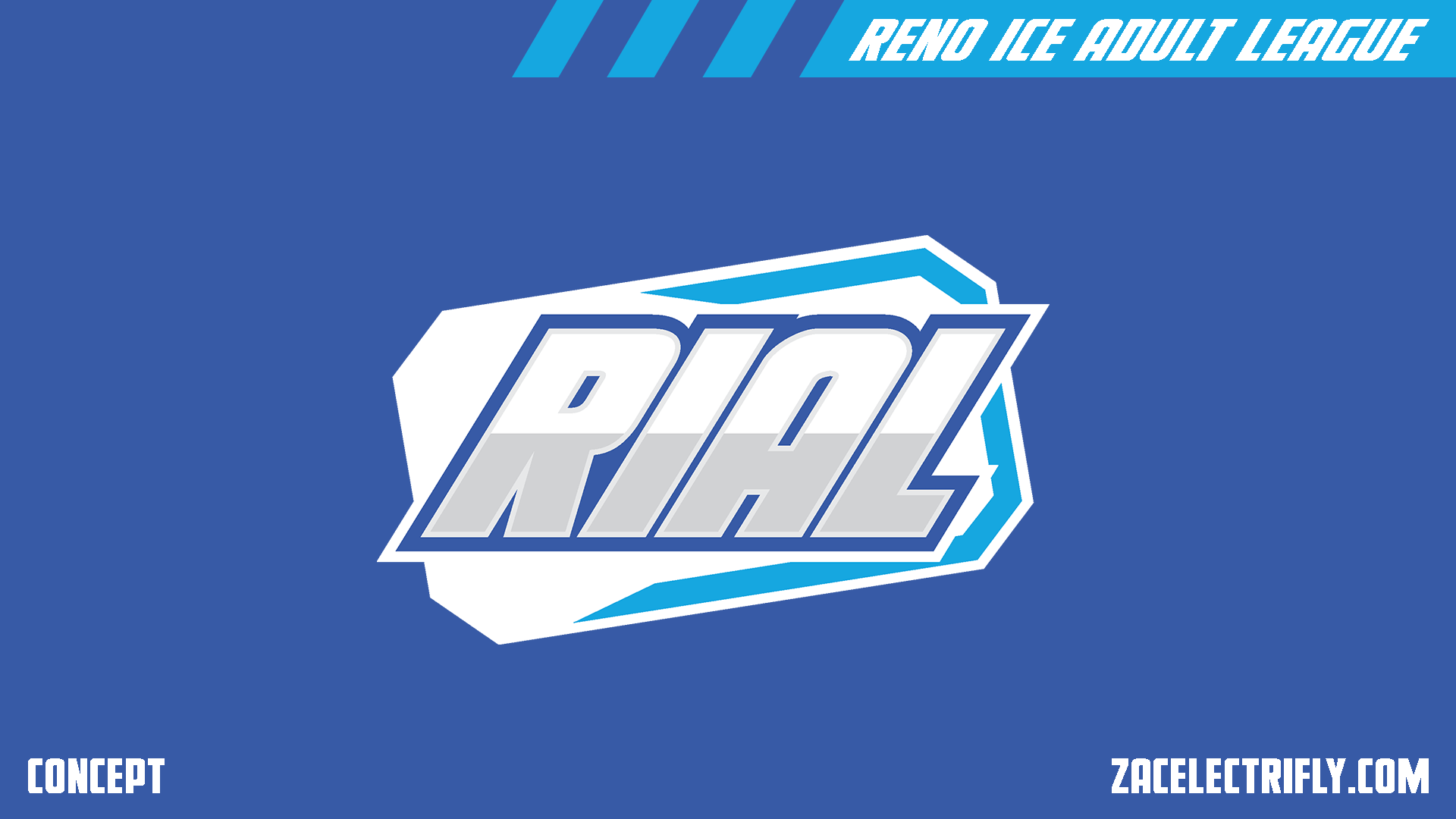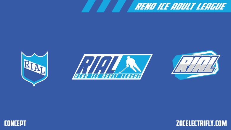 The above image is what I came up with for a league logo for the Reno Ice Adult League. The logo abbreviates Reno Ice Adult League to RIAL. I went for a modern look for the logo. The background shape is the same as an ice rink. The blue tones are the same as the rink uses in their logos. I added silver to help create that modern sports league look. I also made this logo with the intention that it would be put into each teams colors. Similar to how the MLB and MLS logos are used.