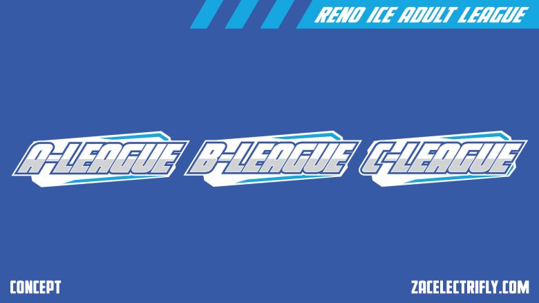 I am putting together a new concept series. This one is for the Reno Ice Adult League. The league is a co-ed recreational league based in Reno Nevada. The league has 3 divisions (which are commonly referred to as leagues), A Division, B Division, and C division. There are a total of 26 teams. I will be doing concept logos and uniforms for each team. This is a real league. The league does play at Reno Ice.