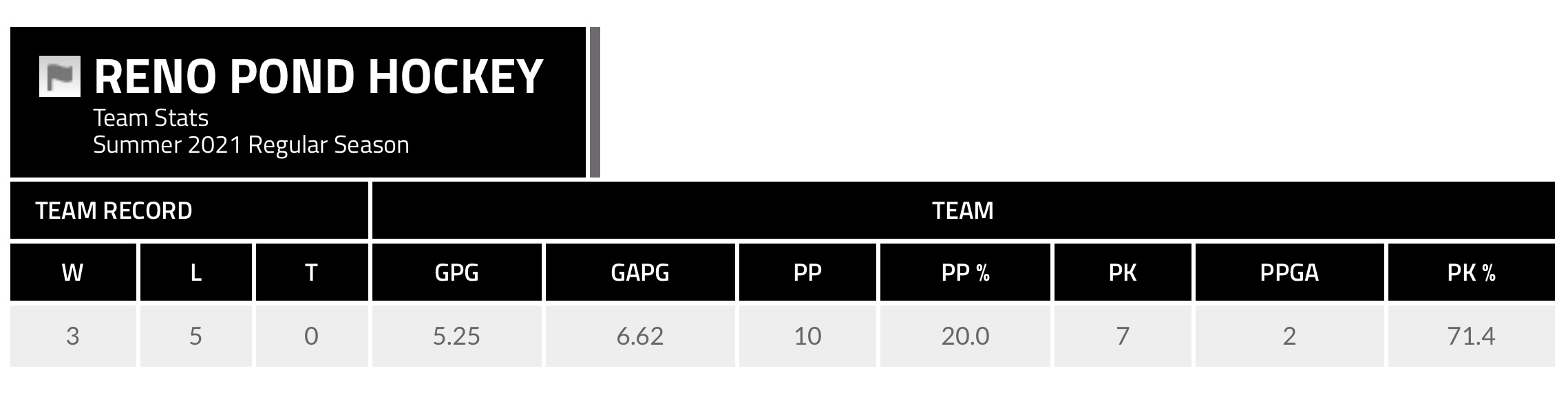- If Reno Pond Hockey doesn’t win tonight they wont be able to have a winning record