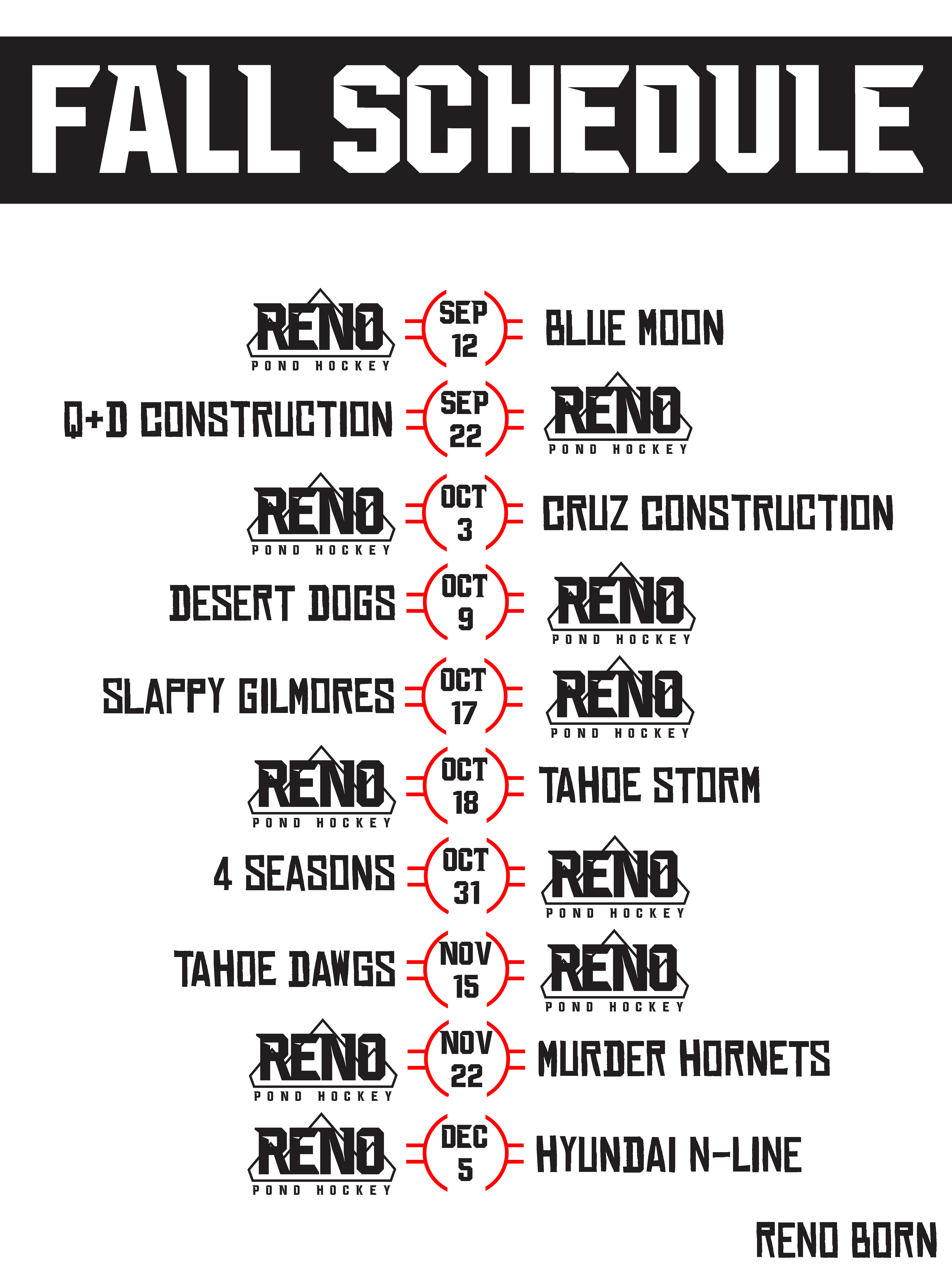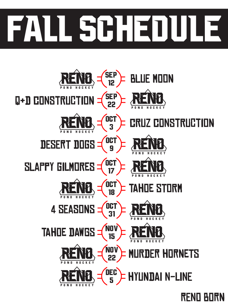 The Reno Ice Adult League has announced the schedule for the fall season.