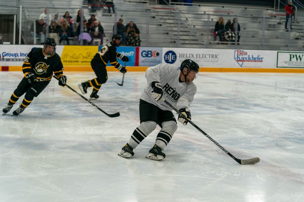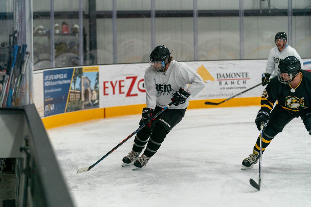 Reno Pond Hockey took on the Murder Hornets on Friday. It was the Reno Ice Adult League Fall 2021 Playoffs. It was the B-League quarter final. It was Reno Pond Hockeys first ever playoff game. The game took place on December 17, 2021 at 10:15PM at Reno Ice.