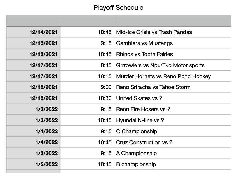 The Reno Ice Adult League Fall 2021 Playoffs are winding down. The C-League Championship completed last night. The A-League and B-League Championships will happen tonight.