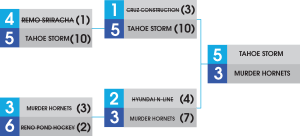 -Murder Hornets are 8-3-0 and Tahoe Storm are 7-5-0