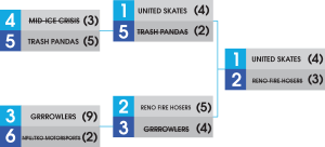 The Trash Pandas, and Grrrowlers have advanced to the semi-final. The United Skates and Reno Fire Hosers have advanced to the C-League Championship. United Skates won the C-League Championship.