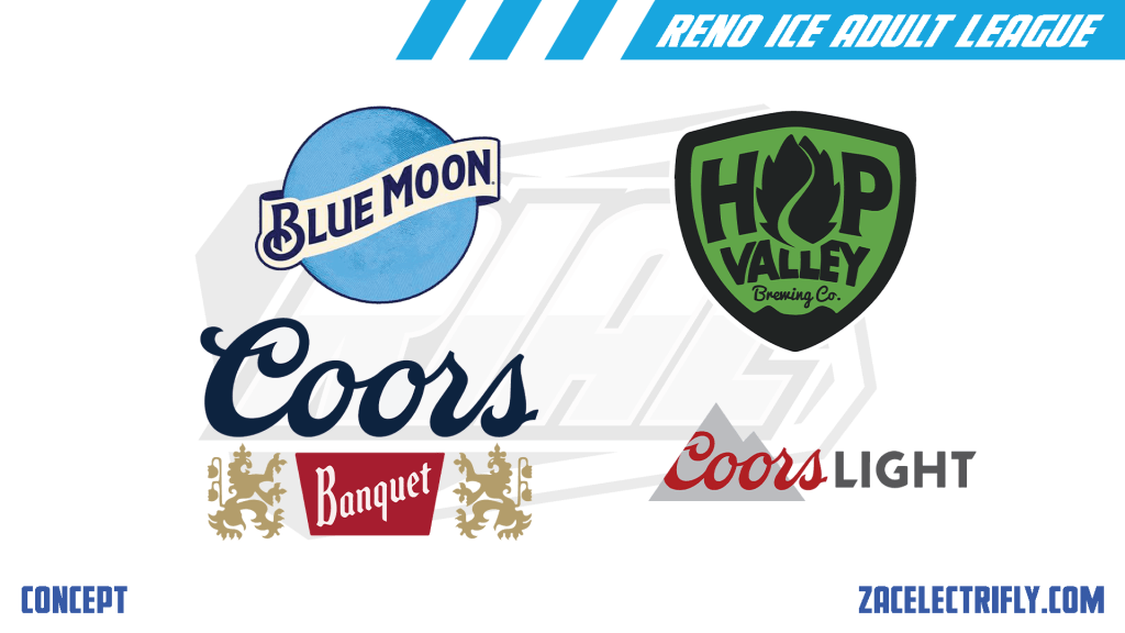 The primary logos are the same as their beer counterparts. I think my favorite of these is the Hop Valley logo. I didn’t have much control over the logos or branding for these teams. I did have a little more control over the alternate logos. With a lot of the alternate and throwback logos I created things that aren’t in the official branding of the companies. Interesting fact #1 that I learned while doing the Nevada division is that Hop Valley sponsor (possibly own) a lacrosse team in Oregon. Interesting fact #2 Molson Coors (parent company for all of these beers) sponsors other non-professional sports team and events outside of the RIAL. I knew that Coors Light did some non-professional sports sponsorships but I did not know much Molson Coors was actually doing it. It seems that Molson Coors allows distributors to use names, logos, and branding to sponsor non-professional sport events and teams.