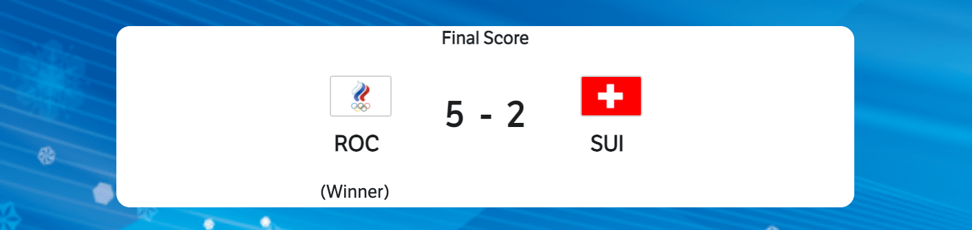 ROC (Russia) continued to make it hard for Switzerland in ROC’s (Russia) opening match. Switzerland continued to struggle in their second game of the tournament. ROC (Russia) took a penalty for hooking to start the game. Russia would then follow that up by scoring the games first goal. Switzerland took a penalty for hooking. ROC (Russia) took a penalty for tripping. Switzerland would score on the resulting power play. ROC (Russia) would then score within a minute to retake the lead. ROC (Russia) would take the lead into the second period. Switzerland would tie the game with their final goal in the second period. ROC (Russia) would then score two to take a three goal lead into the third period. ROC (Russia) would then score the games final goal in the third period. ROC (Russia) would win the game 5-2.