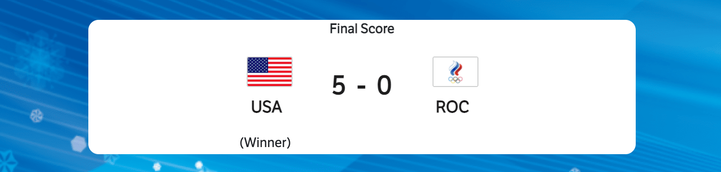 1. […] vs Finland – USA vs ROC (Russia) – USA vs Switzerland – USA vs Canada – USA vs Czech Republic (Quarterfinals) […]