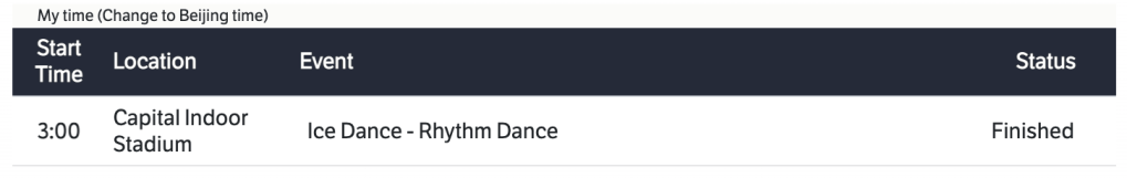 Figure Skating. They had the Ice Dance Rhythm Dance. Figure skating continues on the 13th.