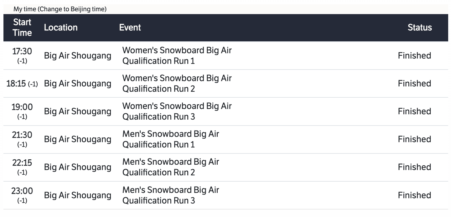 Snowboarding. The big news coming out of Snowboarding i the judging. Now the athletes are complaining about the judging. For more on that check out this ESPN article. Snowboarding had the Men’s and Women’s Big Air Qualifications. Snowboarding will finish up tonight.