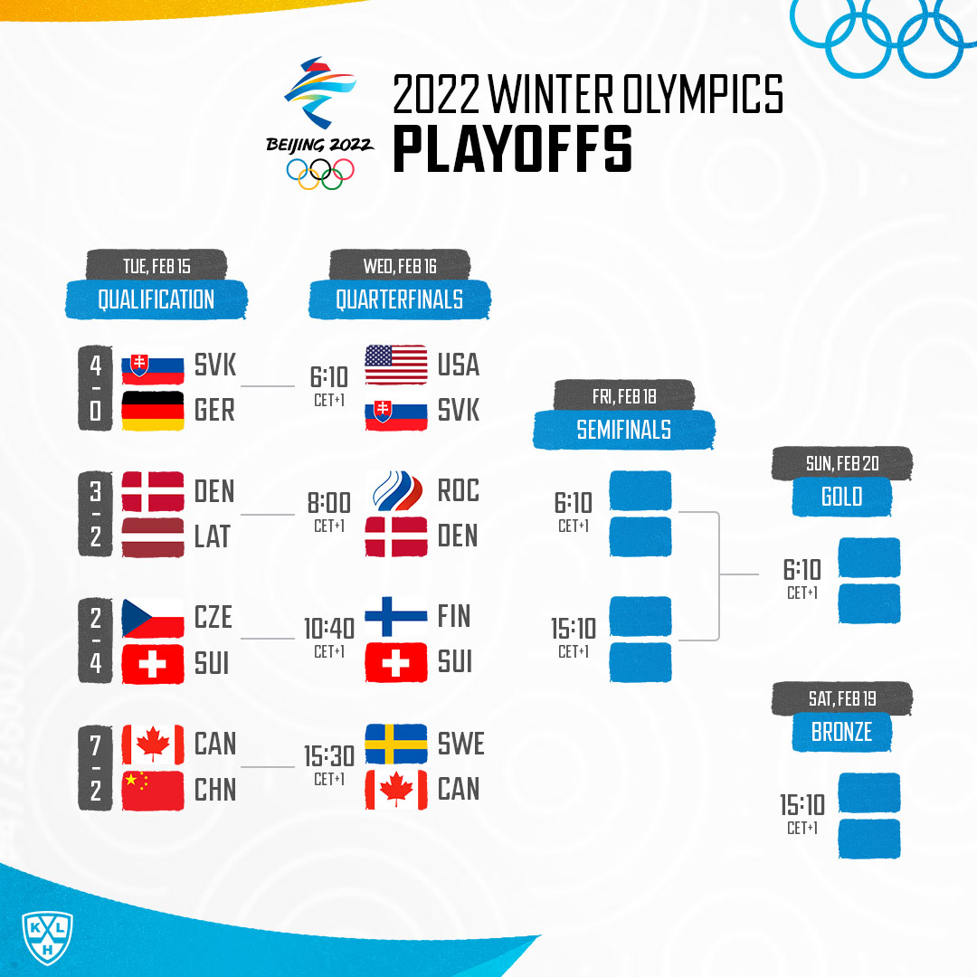 2022 Olympic Men’s Ice Hockey. We are now on day six of the tournament. There were 4 games in the Men’s tournament. All the games were Qualification Play-off games. Slovakia played Germany. Denmark played Latvia. Czech Republic played Switzerland. Canada played China. The winners would advance to the Quarterfinals. The losers would be eliminated. No one was eliminated in the group stage.
