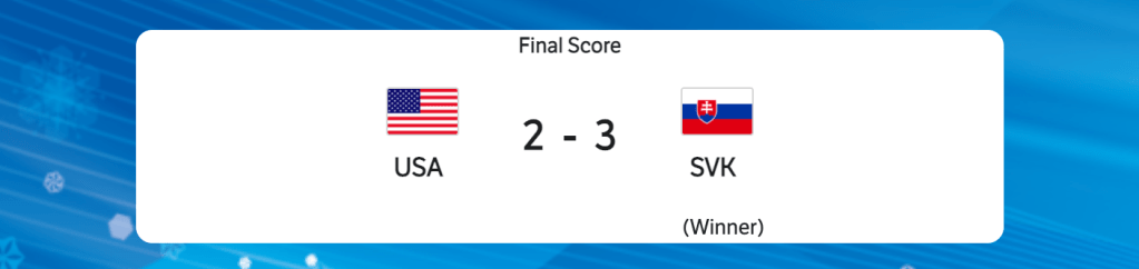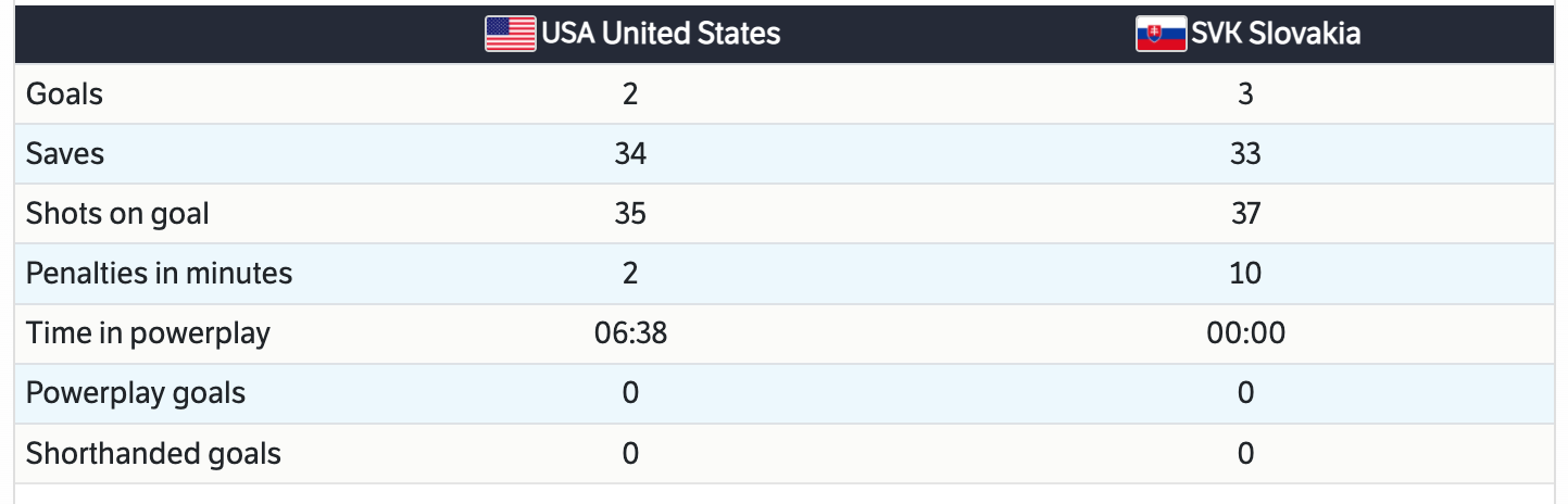 The United States has been eliminated. Slovakia will be moving on to the Semifinals. Slovakia will play in a medal game.