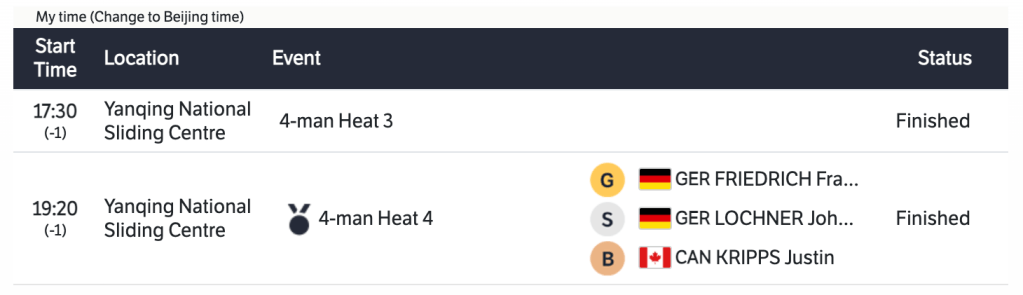 Bobsleigh. In Bobsleigh there was the 4-man heat 3 and 4. Germanys Francesco Friedrich won gold. Germanys Johannes Lochner won silver. Canadas Justin Kripps won bronze. The United States came in 10th and 13th. With that Bobsleigh has finished at the 2022 Olympics.