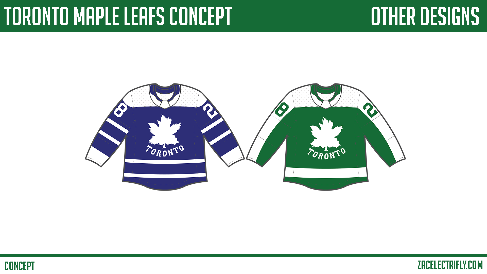 I didn’t do much else outside of the main concept. I knew what I wanted to do and did it. I did recolor the concept in blue. I also did the concept the now iconic Toronto Maple Leafs jersey pattern that was introduced in the1970’s and used until the 1990’s.