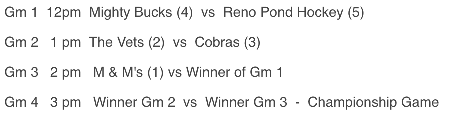 The Sierra Inline Hockey League Playoffs have been announced. The playoffs will be a tournament. All five teams will make the playoffs. Playoffs are scheduled for Saturday, March 26, 2022. The first game will start at noon. There will be four total games.