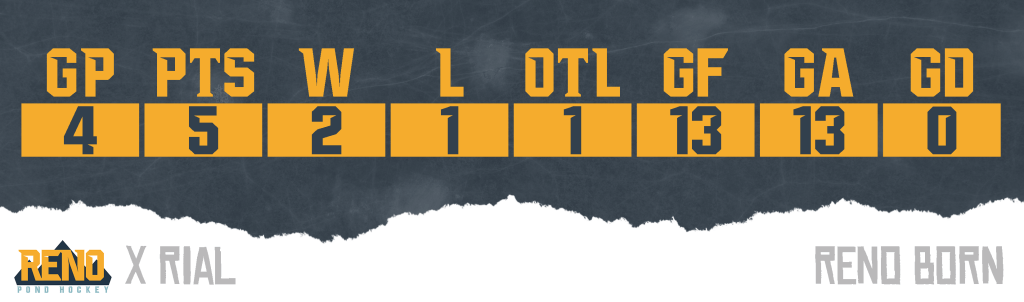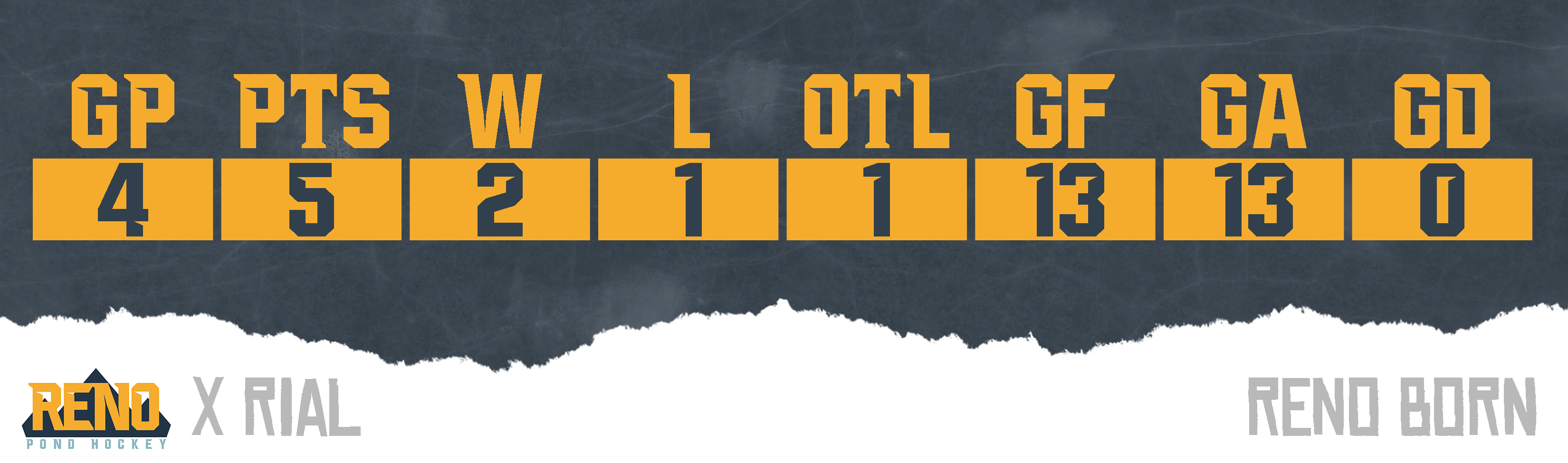 Reno Pond Hockey has allowed 28 goals after four games. That is the most in the league. Reno Pond Hockey has a -23 goal differential.