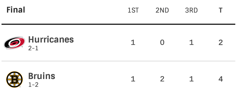 The Bruins were able to get a much needed win. The real difference in this game was their powerplay. They showed some signs of life in this one. I don’t think it will be enough for the Bruins to win the series. I don’t think they will be able to play at a consistent enough pace to beat the Hurricanes in this series. Game 4 will be on Sunday.