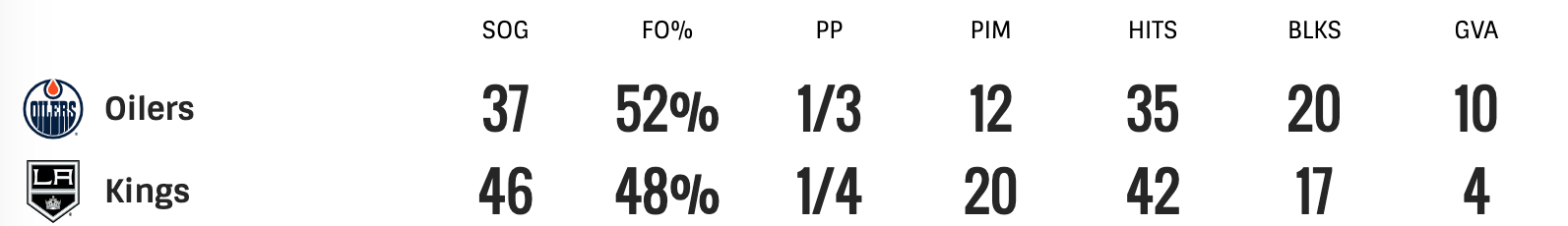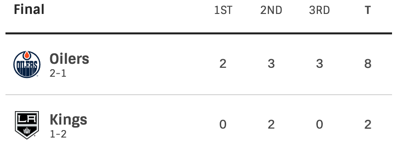 The Oilers are looking like real cup contenders at the moment. They carried over all the momentum that they had from game 2. Right now it looks like there is nothing that the Kings can do to stop the Oilers. Everything is in the Oilers favor right now. Game 4 is on Sunday.