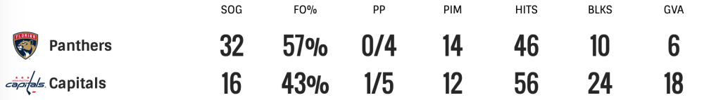 The Panthers showed that they were not going to back down. The Panthers can win this series. Their biggest struggle has been that they have not been able to get quality chances. They have to get more quality chances if they want to win in the playoffs. The Capitals on the other hand just didn’t get a lot of shots. Credit to them for keeping the game close and managing to take the lead a few times. They are not going to win a playoff series with less than 20 shots a game.