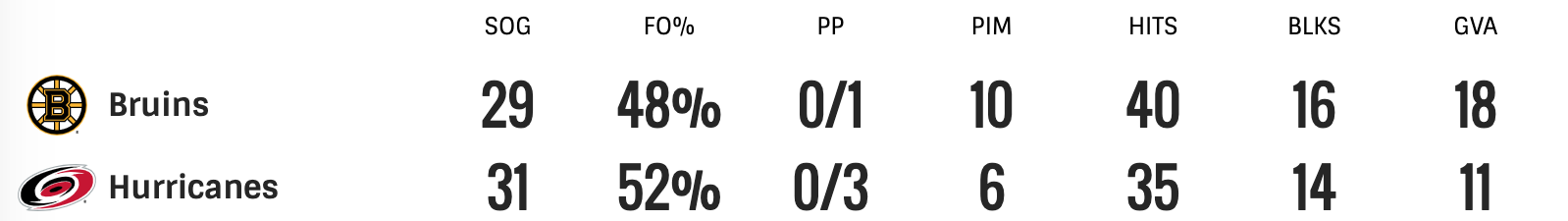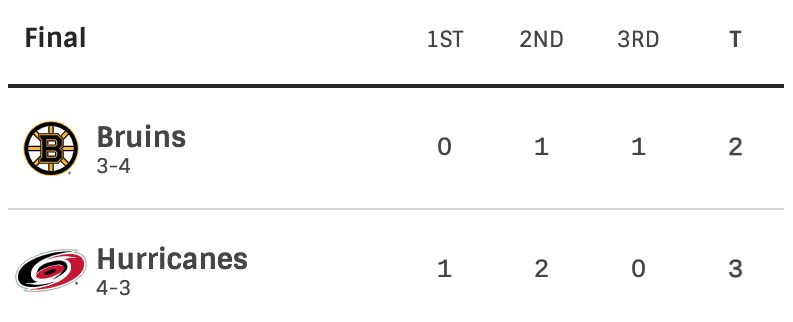 The Bruins put up a fight but in the end it didn’t really matter. The Bruins are out. The Hurricanes will now have to face the winner of the Penguins vs Rangers series.