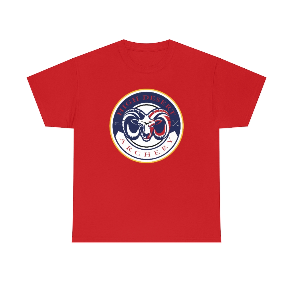 There are two designs for High Desert Archery. The designs put both the main logo and the Bighorn logo in USA colors. These designs only come in t-shirts. Buying these shirts helps local archery. It helps keep the rang open. Keeping the rang open helps keeps youth and adult archery alive in Reno.
