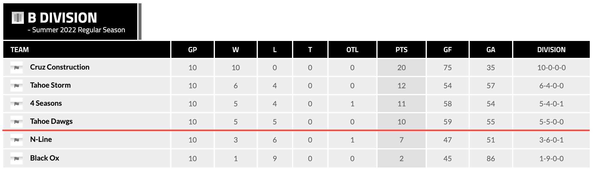 In The Playoffs: Cruz Construction, Tahoe Storm, Tahoe Dawgs, 4 Seasons