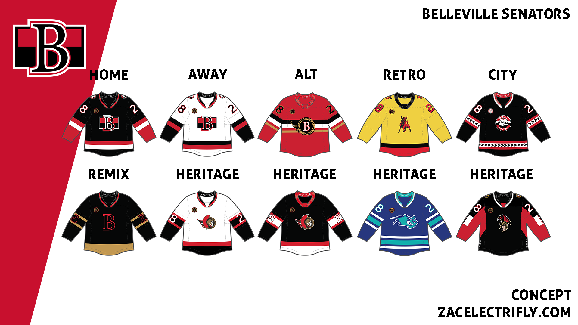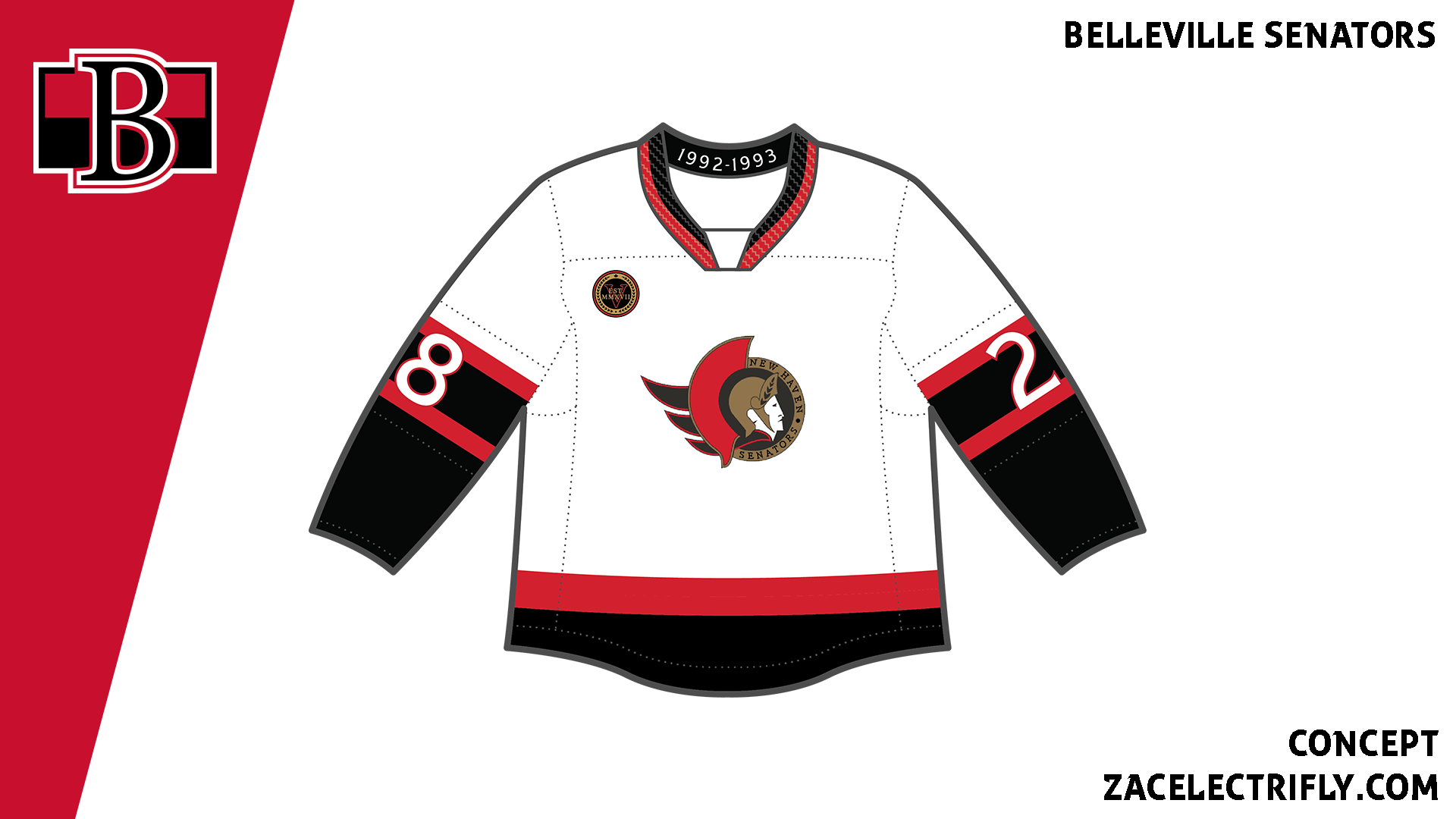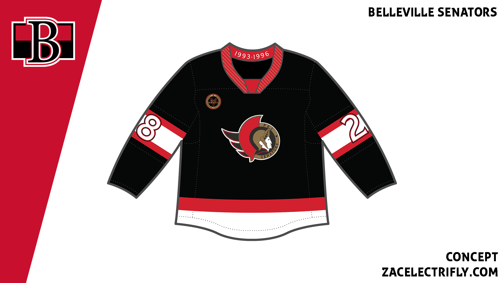 The Belleville Senators have four Heritage jerseys. The New Haven Senators (1992-93 ), the Prince Edward Island Senators (1993-96), the Worcester IceCats (1996-98), and the Binghamton Senators (2002-17). The Heritage jerseys are inspired by the Ottawa Senators former primary affiliates.