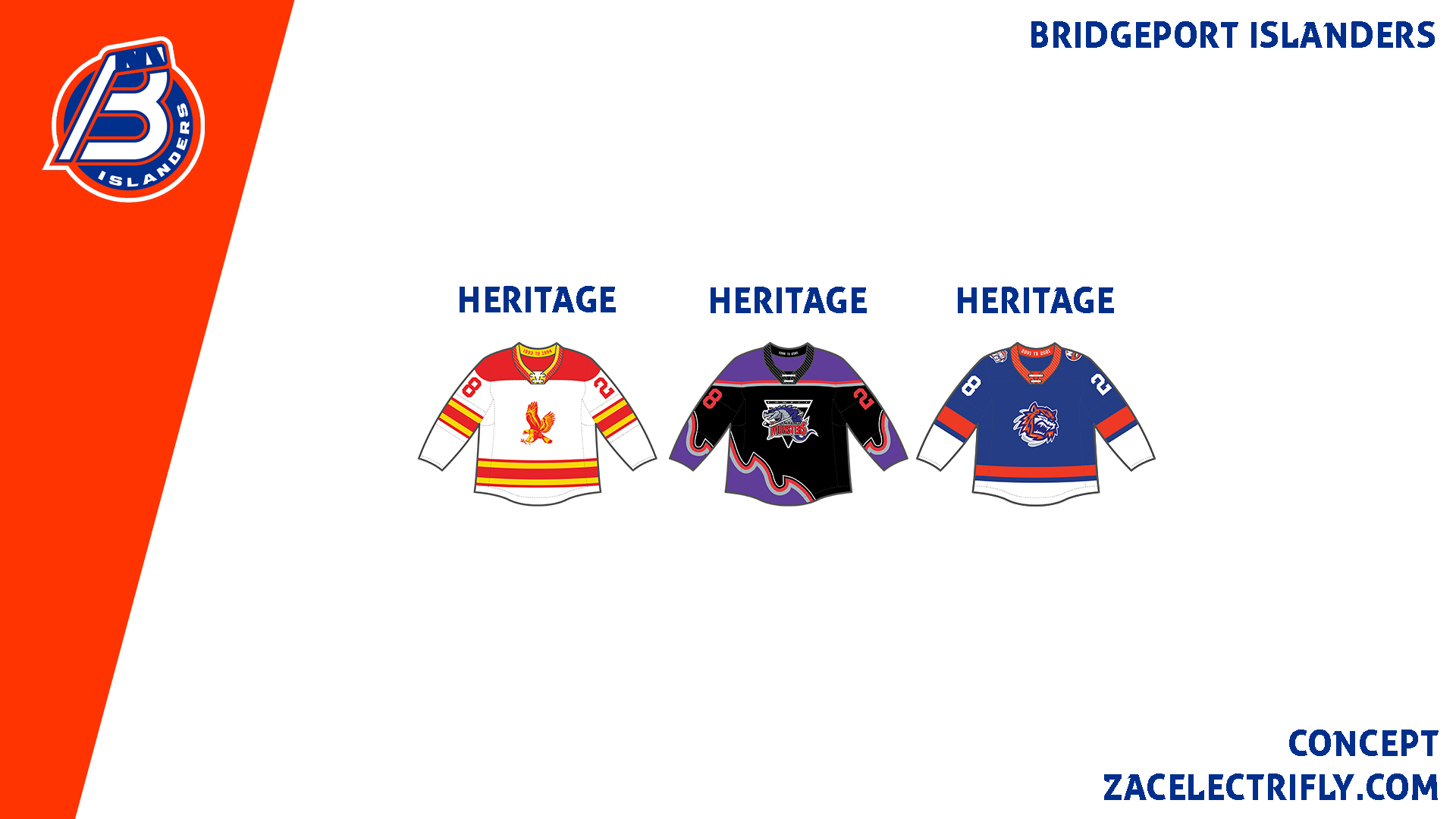 The Bridgeport Islanders have six Heritage jerseys. The New Haven Nighthawks (1972-73 ), the Springfield Indians (1984-90), the Capital District Islanders (1990-93), the Salt Lake Golden Eagles (1993-94), the Lowell Lock Monsters (1998-2001), and the Bridgeport Sound Tigers (2001-21). The Heritage jerseys are inspired by the New York Islanders former primary affiliates.