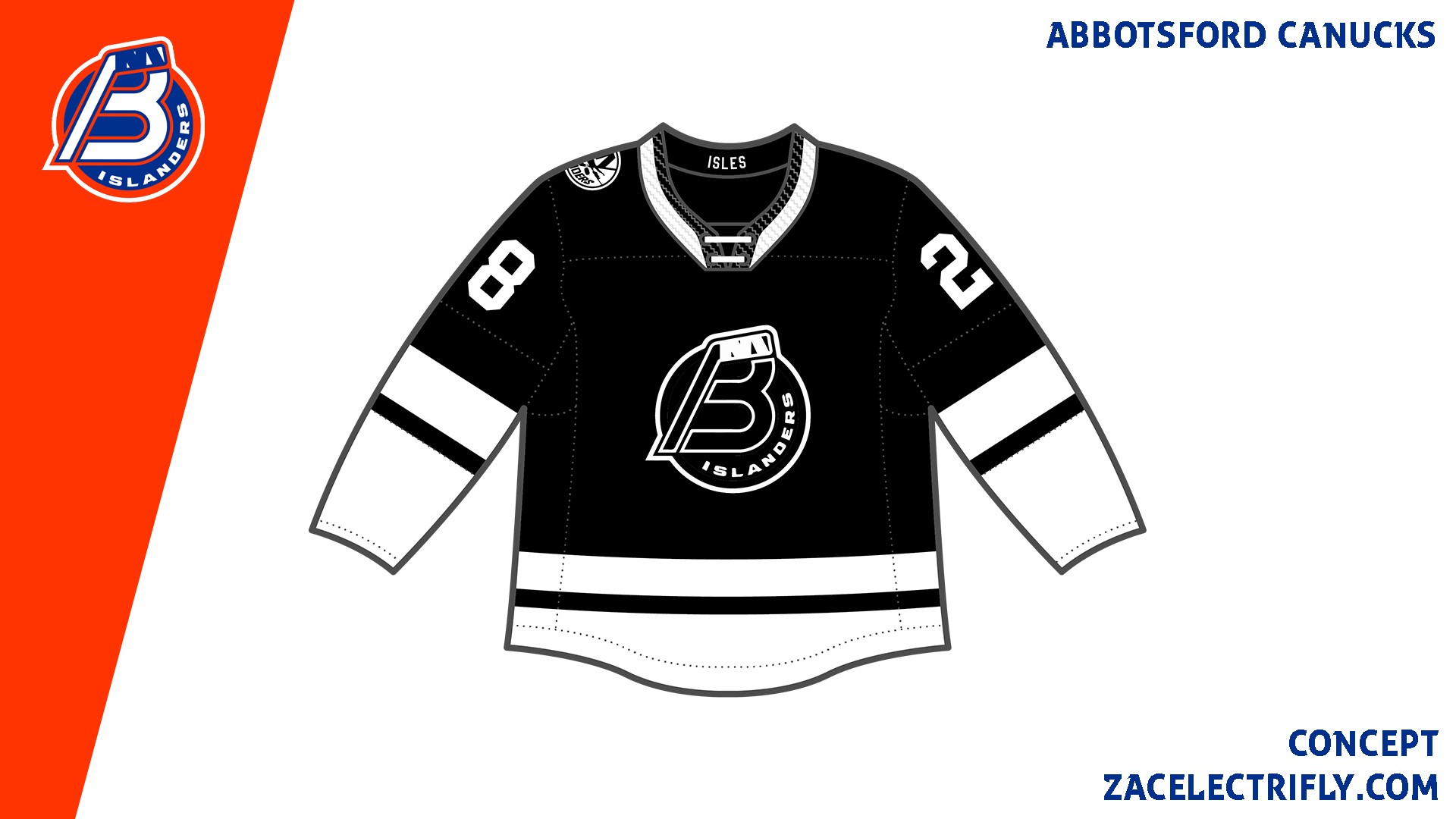 The Affiliate Remix jersey is black and white. It is the New York Islanders home/away jersey in black and white. Being black and white is inspired by the New York Islanders third jersey they wore while they played in Brooklyn. On the front is a recolor of the Bridgeport Islanders logo. On the collar it says Isles. On the shoulder is the New York Islanders primary logo in black in white.