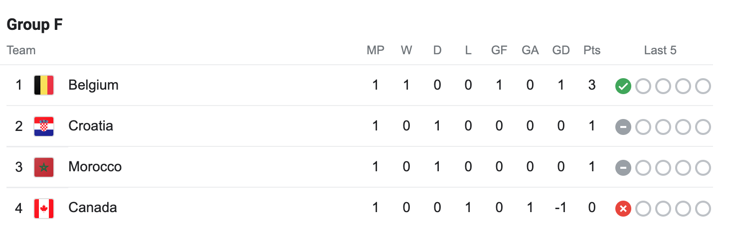 The Netherlands retained its lead in Group A. England retained its lead in Group B. Wales is now at the bottom of Group B. Poland now leads Group C. Mexico is now at the bottom of the group. I am not very confident that they will make it out of the group stage. I think like a 60% chance. France stays in the lad of Group D. Tunisia is now at the bottom. I think this is how Group D will finish. Spain leads Group E. Belgium leads Group F. Brazil leads Group G. Portugal leads Group H.