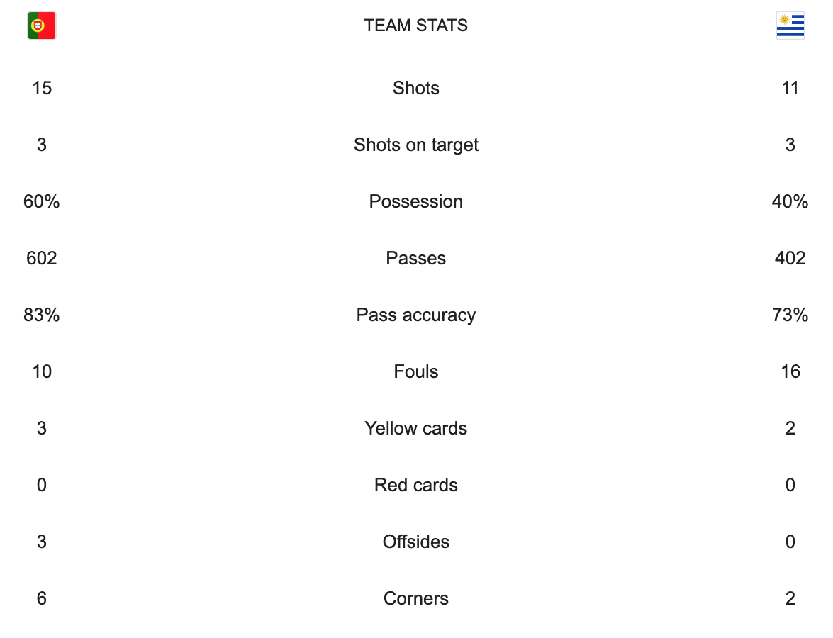 Today’s third match was Portugal vs Uruguay. The game was at 0-0 going into the second half. Portugal scored in the 54′ minute after coming close multiple times. They scored again in extra time to seal the deal. The final was 2-0 Portugal. Portugal was in control of this game. They started off slow in the first half but in the second half, it was all Portugal. Despite taking a lot of shots it didn’t seem like there was any real threat from Uruguay.