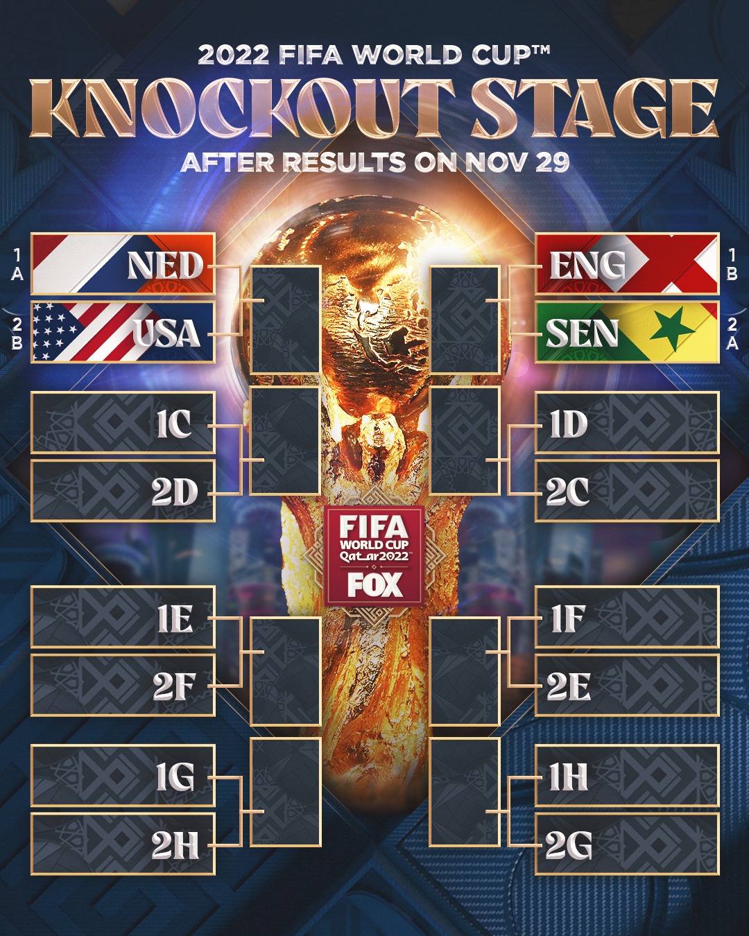 In the current bracket, the Netherlands will play the United States in the round of 16. The only other Round of 16 matches currently set is England vs Senegal.