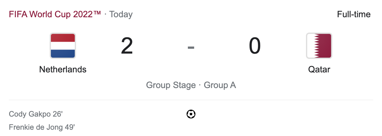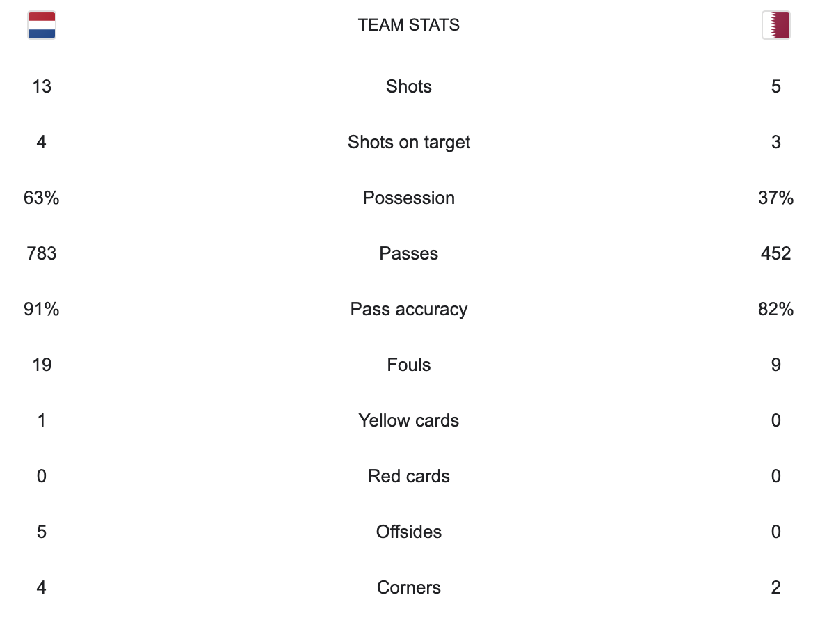 At the same time Ecuador was playing Senegal, the Netherlands were playing Qatar. Qatar had already been eliminated. The Netherlands needed a draw or win to advance. They could have advanced with a loss as long as the Ecuador vs Senegal game didn’t end in a tie. If that game did end in a tie and they lost it would be on the tie-breakers if they advance. The Netherlands score the first goal in the 26′ minute. They would take a 1-0 lead into halftime. In the 49′ minute they would add to their lead. The final was 2-0 Netherlands. With the win they did not have to worry about the other Group A game. The Netherlands advanced to the round of 16. Qatar had an extremely disappointing world cup. I don’t think they would have been in it if they weren’t hosting. Netherlands outshot Qatar. They had majority of possession. They were just the better team all around which we knew going into this game.