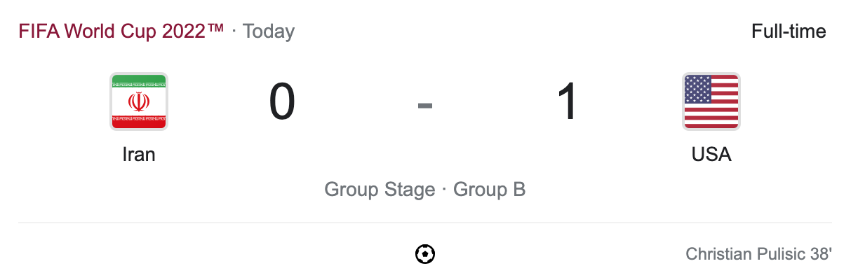 For the next match, Iran played the United States. The United States needed a win to advance. Iran needed at least a draw to advance. I already did a review of this game. If you have not seen it go check it out. The United States scored the game’s only goal in the 38′ minute. That secured their win. With the win, the United States advanced to the round of 16. The United States also went undefeated during the group stage. This win gave the United States back to back clean sheets. Iran was eliminated after the loss. The USA had majority of the shots, possession, and set pieces. Christian Pulisic did go to the hospital due to a collision with the Iran keeper while scoring.