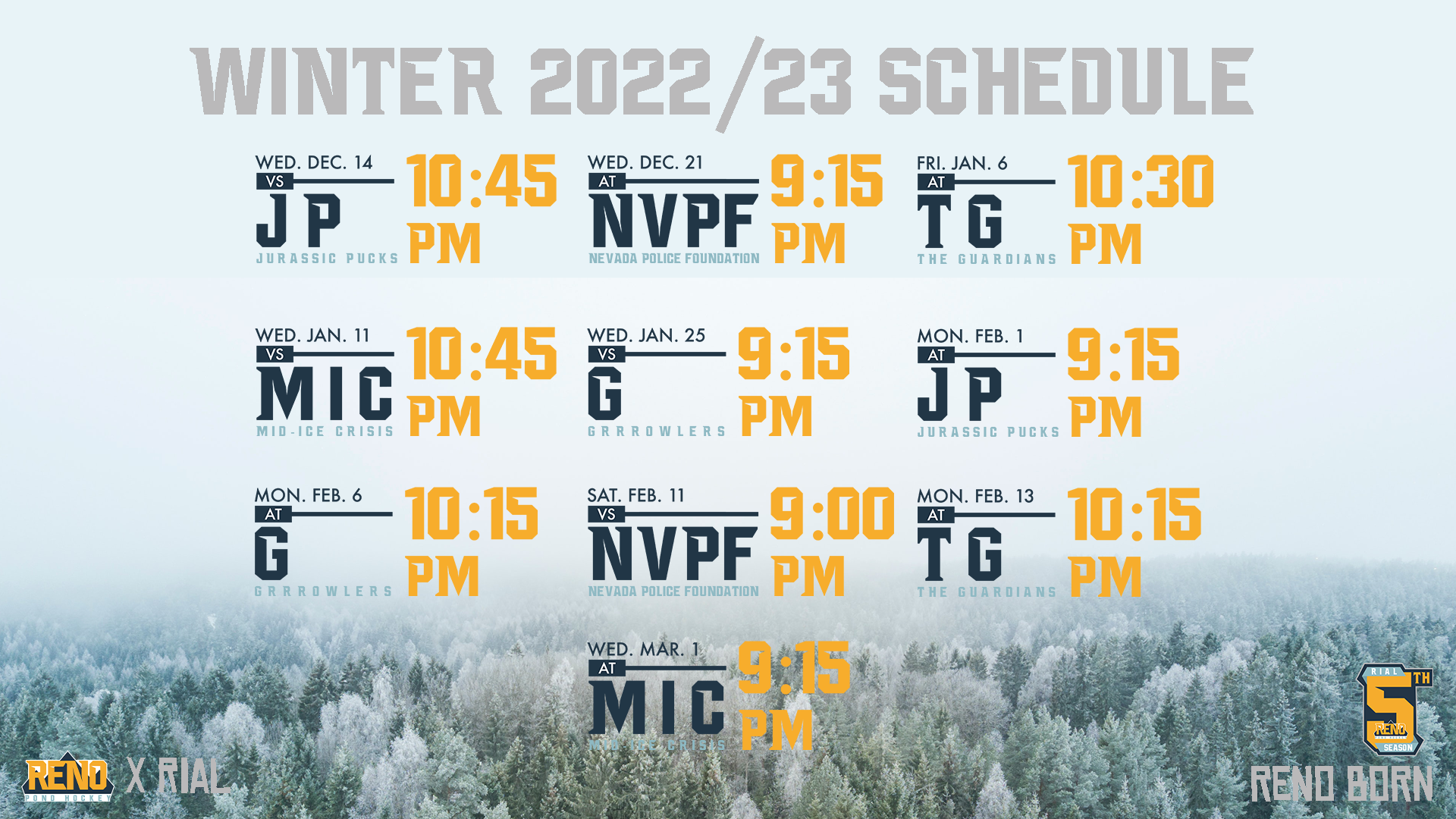 The Reno Pond Hockey schedule for the Reno Ice Adult League 2022/23 season is out now. You can check out the schedule here. In this post, there is a printable schedule that can be printed or used as wallpaper. There is also a mobile schedule that can be used for cell phones. There is also a downloadable schedule that can be added to your calendar.