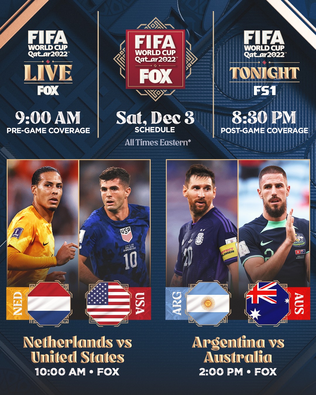 It is now the round of 16. It’s win or go home. The #8 FIFA-ranked Netherlands and the #16 FIFA-ranked United States will play in the first Knockout stage game of the tournament. I will have a preview of that game up in the morning. Following that game, the #3 FIFA-ranked Argentina will play the #38 FIFA-ranked Australia.