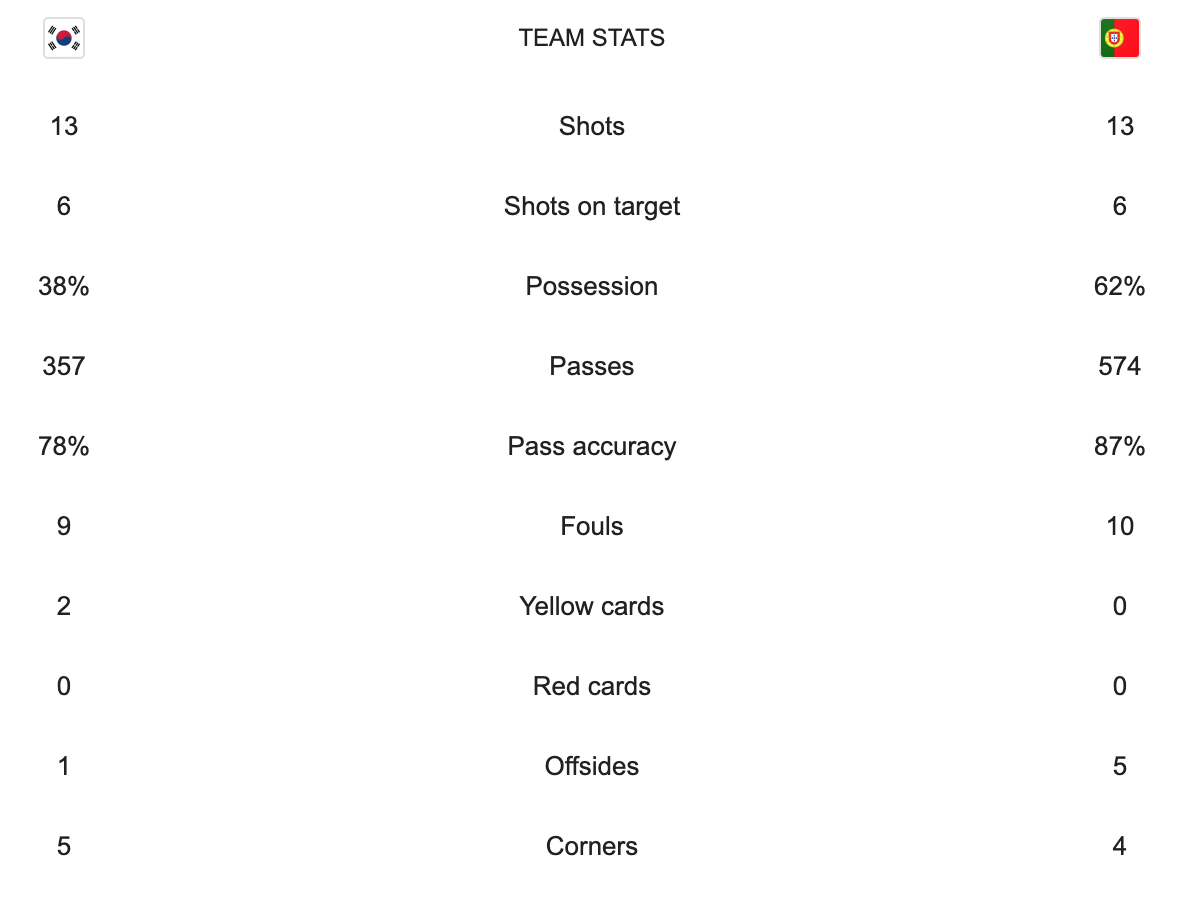 South Korea vs Portugal