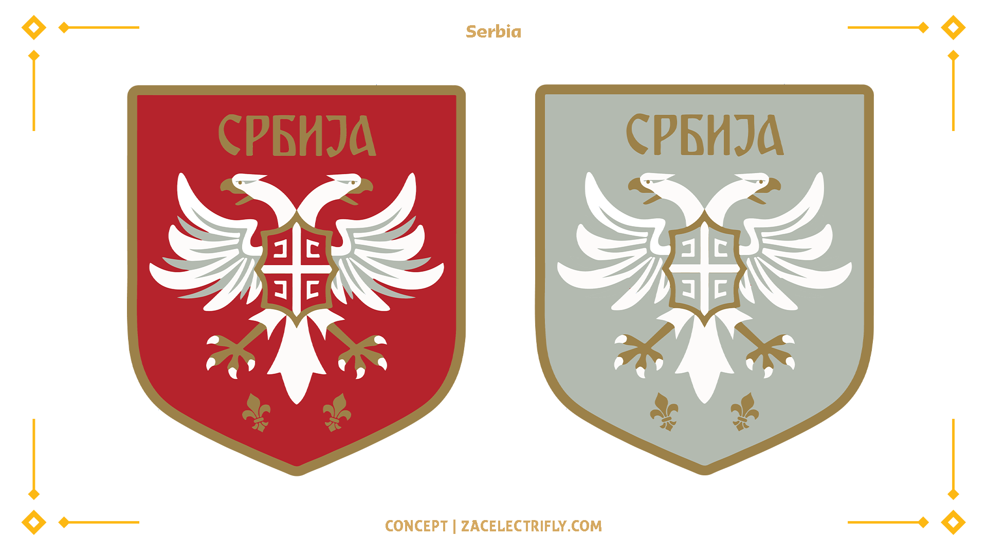 Serbia is sponsored by Puma. Their colors are red, white, gold, and silver. I recolored their logo to match the logo on their soccer jersey. They have a red and a white jersey. On their collar are the Serbian flag and their abbreviation.
