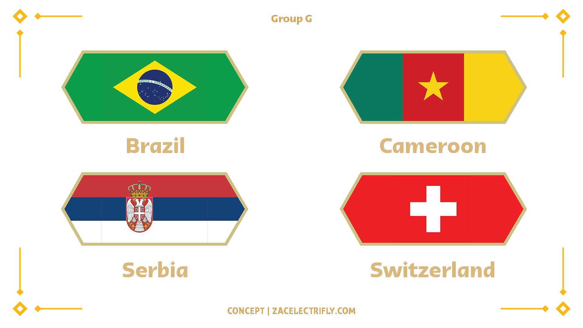 Group F is Brazil, Cameroon, Serbia, and Switzerland. In this concept, Switzerland and Serbia would keep their current hockey systems. Brazil and Cameroon would create systems modeled after their football league systems.