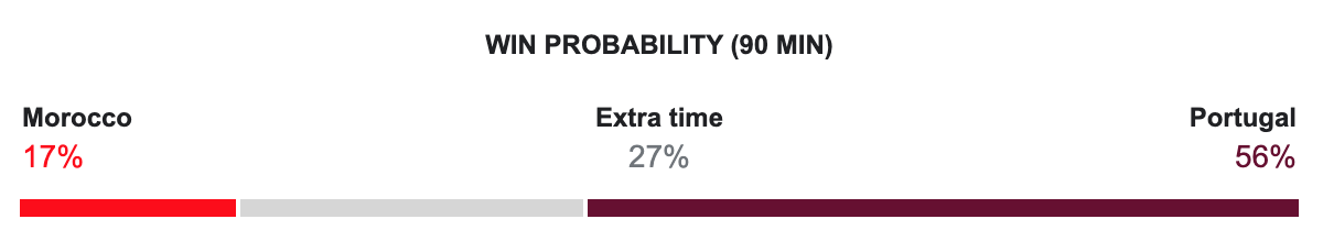 Morocco vs Portugal. Morocco had an upset win to get here. Portugal has been dominating. Portugal are highly favored to win but Spain was too. Does Morocco have any tricks up their sleeves or will Portugal continue to dominate.