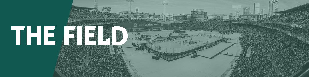 Fenway Park is the location of AHL Outdoors Boston and the NHL 2023 Winter Classic. It also hosts other outdoor hockey events. The 37,755-capacity stadium is home to the Boston Red Sox. For this concept, not much of the branding would change from the NHL 2023 Winter Classic branding. The location of the team logos on the field might change and the scoreboard would be the only areas to use the AHL Outdoors Boston branding.