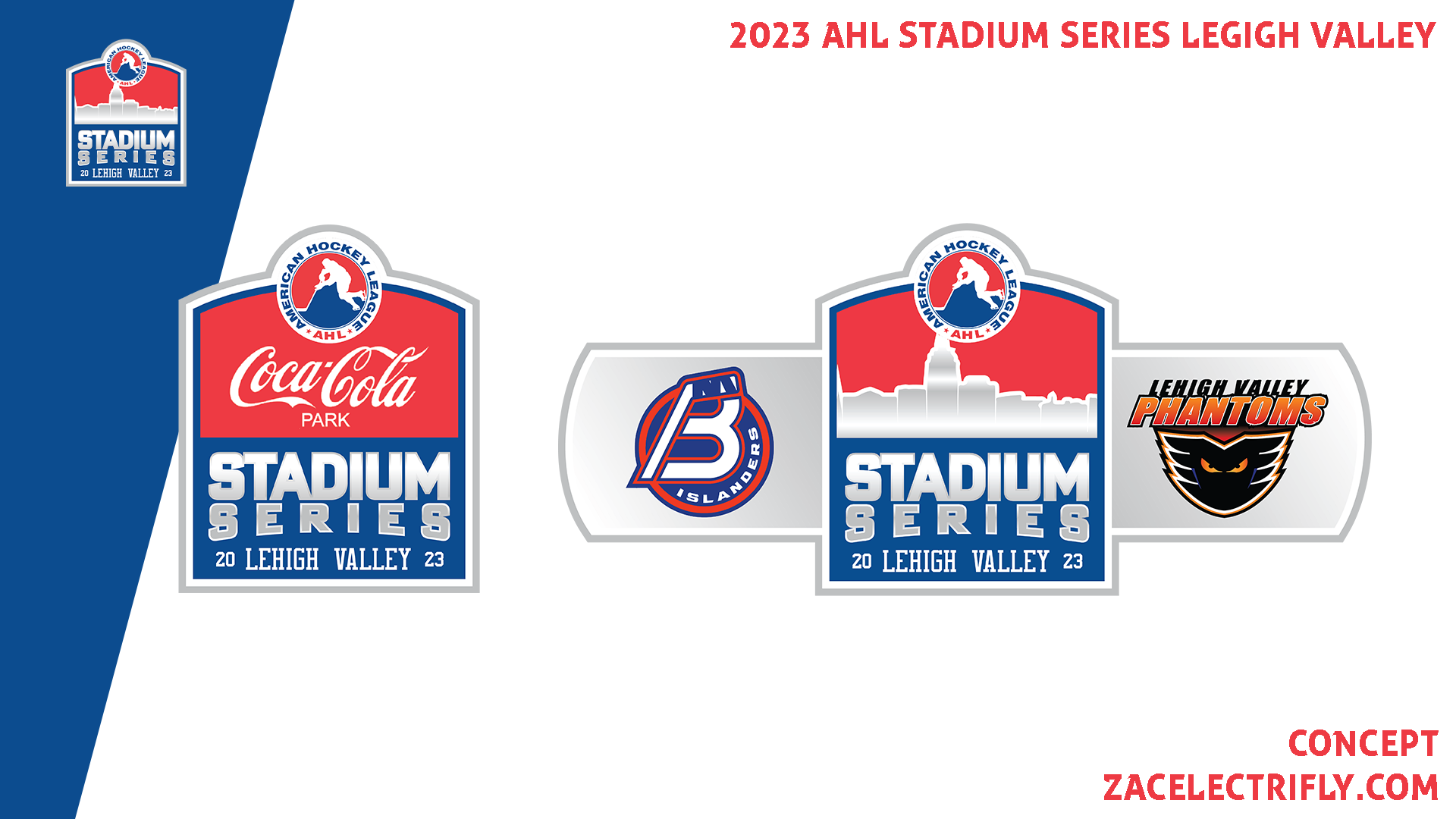I am back with another American Hockey League event concept. Today I have the third game in the AHL Stadium series. For this game, the Wold Divisions Lehigh Valley Phantoms host the Bridgeport Islanders. The game is at Coca Cola Park in Allentown, Pensilvania. For this concept, the game would be on February 18th, 2023.