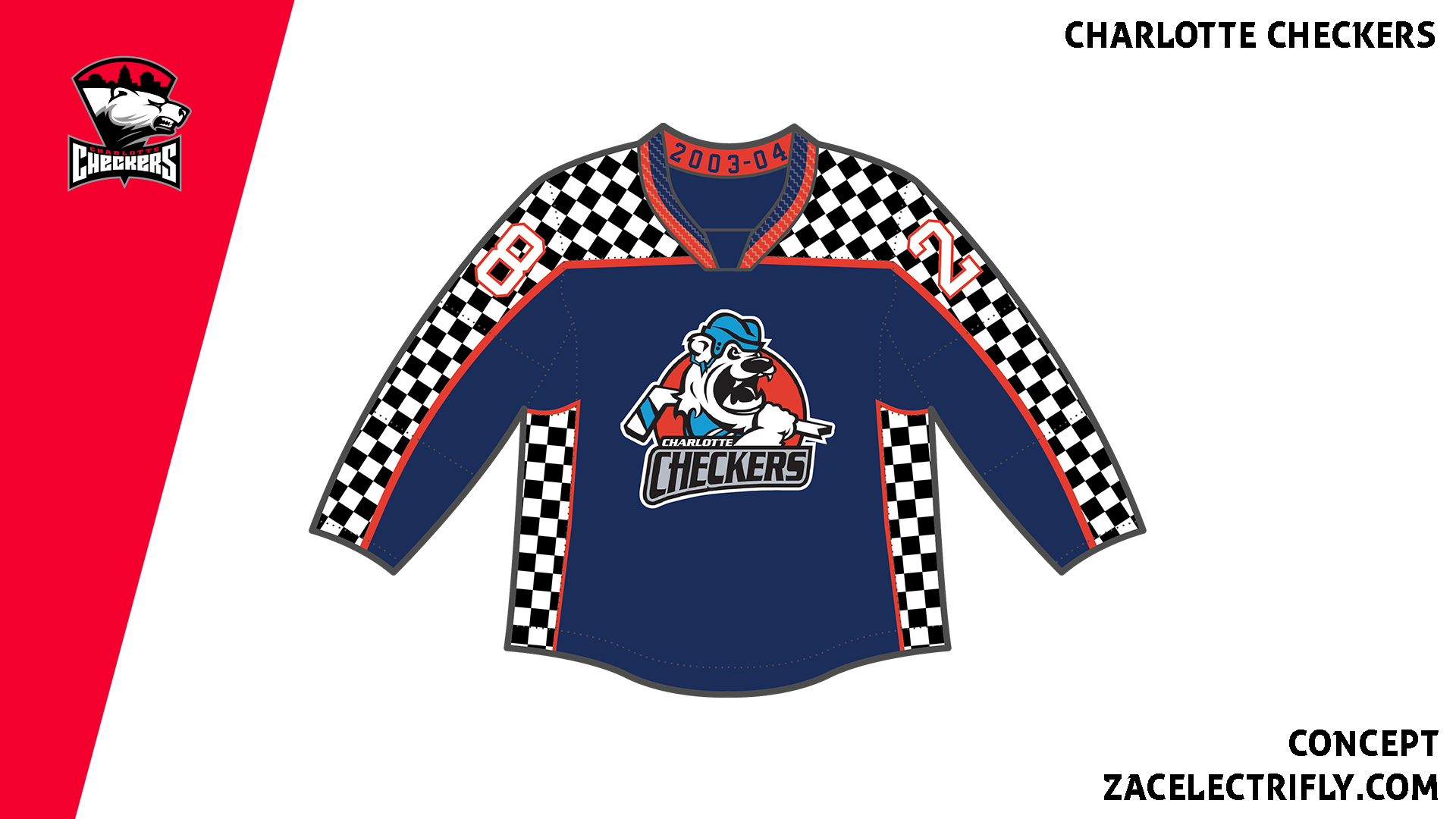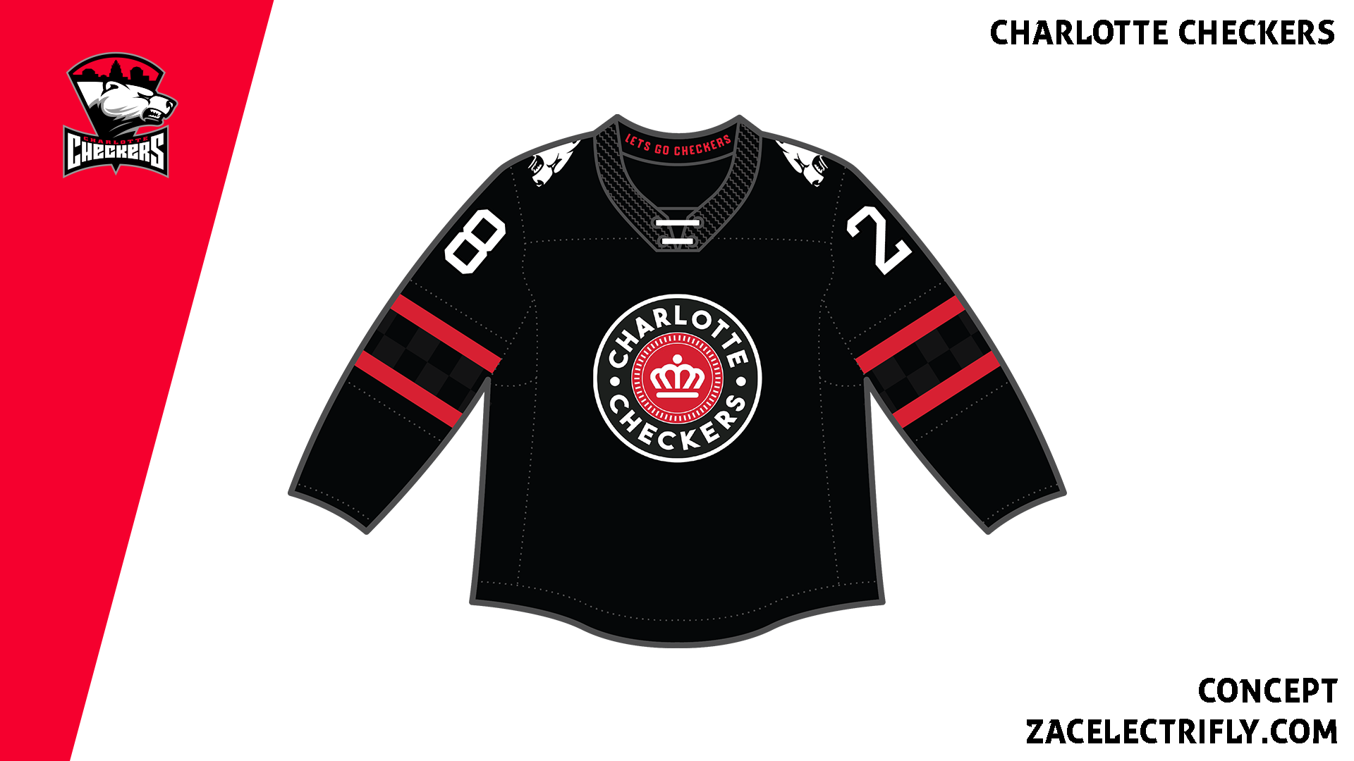 Next up in my American Hockey League concept series is the Charlotte Checkers. They are the primary affiliate of the Florida Panthers. They play in the 8,600-seat Bojangles Coliseum. Charlotte North Carolina has a population of 874,579. The Charlotte Checkers entered the AHL in 1990 as the Capital District Islanders. From 1956 to 1977 the Checkers played in the Southern Hockey League. After 17 years the team was brought as an ECHL expansion team. They made the jump to the AHL in 2010 after the owner bought the Albany River Rats and relocated them to Charlotte to become to current Charlotte Checkers. Technically the ECHL team and the AHL team are different franchises but I see it more like the Checkers took the River Rats place in the AHL.