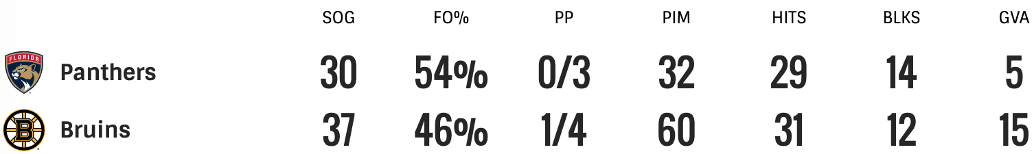 Going into game two the Boston Bruins had a 1-0 series lead over the Florida Panthers after winning game one 3-1. There were no goals in the first period. The score would be tied at 0-0 after the first period.