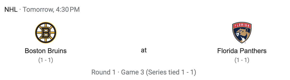 Brandon Montour would score the first goal of the third period. His goal would give the Panthers a 3-2 lead. Carter Verhaeghe scored to expand the Panthers lead. Brandon Montour would score again to put the Bruins in a deeper hole. Eetu Luostarinen would score for the Panthers to put the game well out of reach of the Bruins. Late in the game Taylor Hall would score for the Bruins last goal but it didn’t matter the game was already over. The final score was 6-3 Panthers. The series is now tied at 1-1 as it heads to Florida.