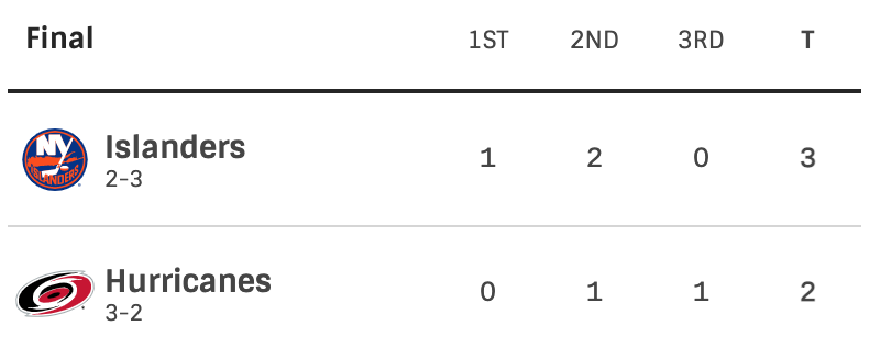 Sebastain Aho scored one more for the Hurricanes. That would be it for game five. The final score was 3-2 Islanders. The Hurricanes still lead the series as it is now 3-2 Hurricanes.
