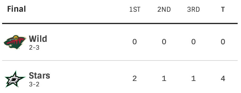 The wild didn’t show up in this one. Credit to the Stars but the Wild did nothing in this game. The Stars now have a chance to closeout the series at home in game six. If the Wild continue to play how they did in this game there will not be a game seven.