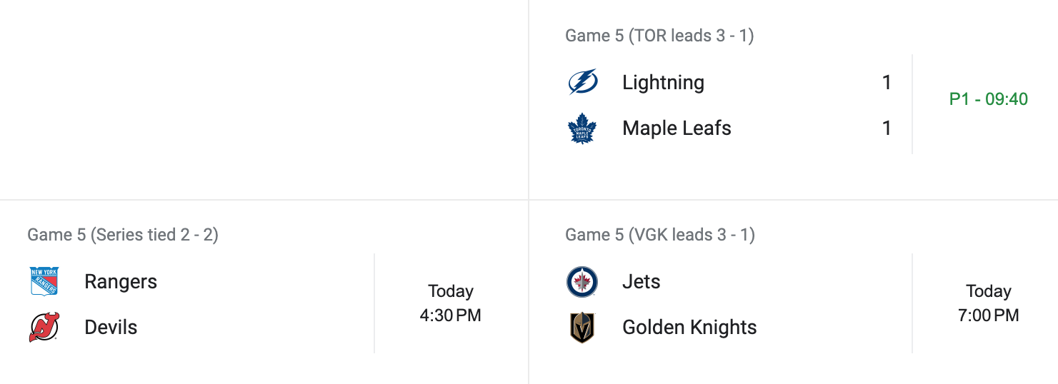 As of writing this the Tampa Bay and Toronto game is tied at 1-1 half way through the first period.