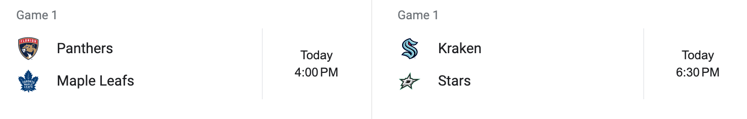 Round two game ones start tonight. Will the Maple Leafs continue to win? Will the Panthers be too much for the Maple Leafs? Will the Stars do what the defending champions could not? Will the Kraken continue to upset higher ranked teams?